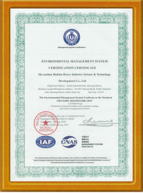 環境管理體系認證證書-英文版